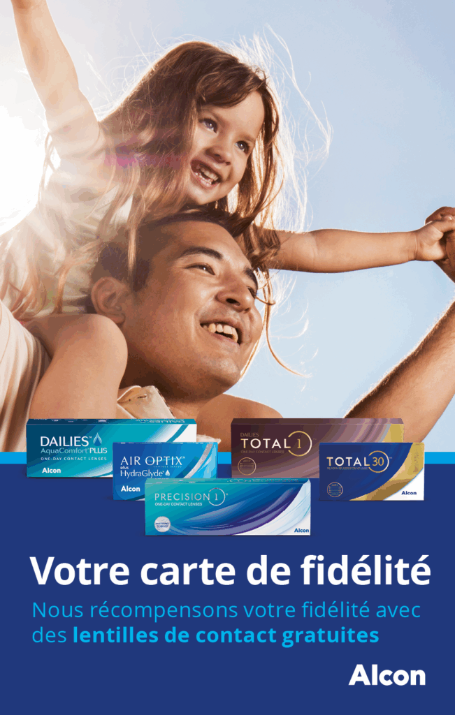 Nous sommes ravis que vous utilisiez les produits Alcon. Vous pouvez échanger vos bons et cartes de fidélité ici.
